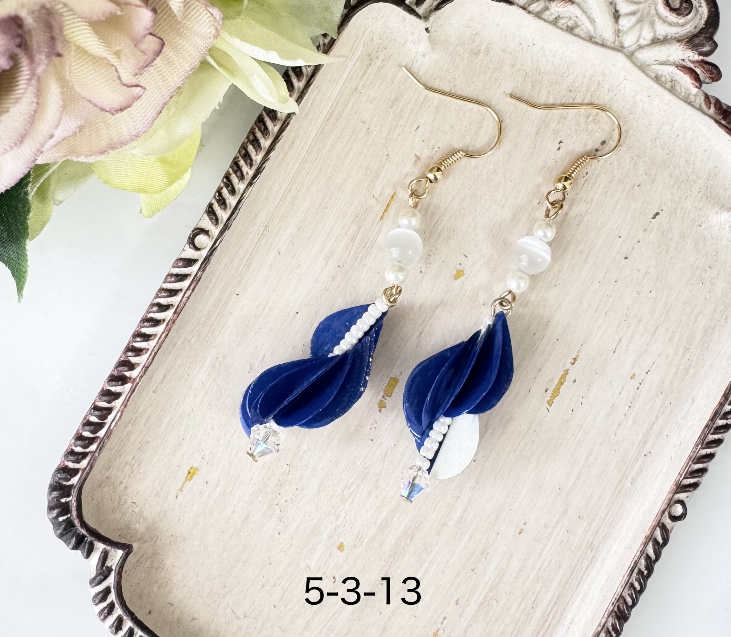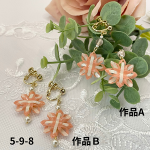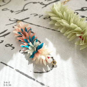 作品使用ペーパー タリサ大NO.142 タリサ小・シャンテNO.80 材料 タリサ大 5枚×2タリサ小 1枚×2 シャンテ 1枚×2Tピン 1本×29ピン 1本×2パール3mm 3個×2 ピアスまたはイヤリング 1組 作...
