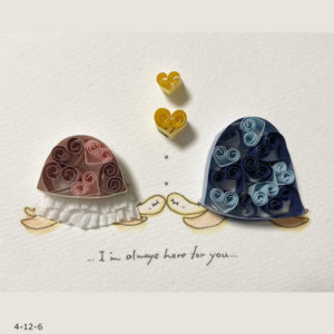 材料 ラインペーパー10mmコピックペン、色鉛筆など台紙リボンフリルラインストーン ※お好みで 作り方 台紙に色を塗り、片方のカメにリボンを貼り付け、ラインペーパーを形に沿って立てる。(画像1) パーツを作る。<ツインハ...