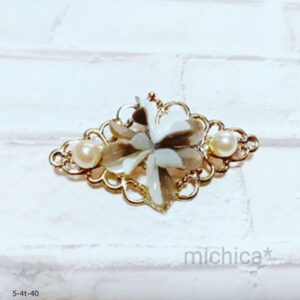 作品使用ペーパーNO.002、 NO.112 材料 5mmペーパーハトメ9ピンG(0.7×50mm)TピンG(0.5×22mm)ロンデル 5mmスワローパール(3mm)スワローパール(8mm)丸カンG(太い・細い)2種類...