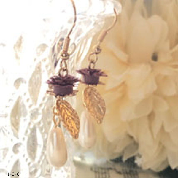 5. 2を上、3を下にして一輪挿しの様にし、ピアスまたはイヤリングにする。