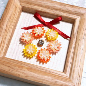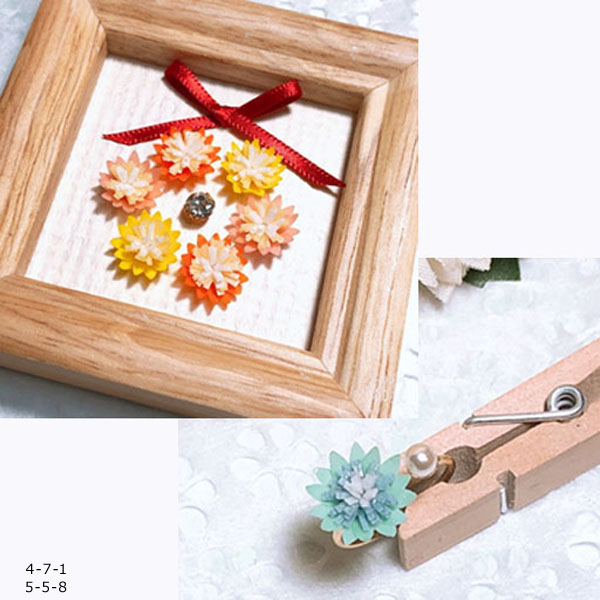 - 1から3の花を作り、フレームにまとめる。または、指輪にする。