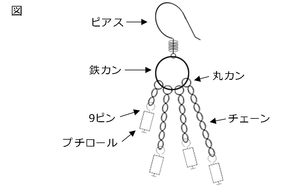 プチロール ブランコ 2020年4月30日 by Ami 作品使用ペーパー(左から)NO.31 NO.72 NO.30 NO.31 材料 ラインペーパー4㎜ 長さ1/4 4個×2鉄カン 10㎜ 3個丸カン 4個×3Tピン 4個×3ピアス・イヤリング金具 作り方 プチロールを作る。図の通り仕上げる。(by Ami) *チェーンコマ数 左から2、6、5、8(チェーンの種類によって)*チェーン長さ 左から2.5cm、3.5cm、3cm、4cm(目安) 販売価格 1,100円(税込)~ ダウンロード レシピ番号 1-1-24 Ami 神奈川県 県央地域