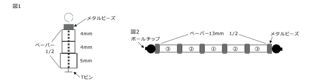 プチロールを作り、図2のようにワイヤーを使ってパーツを入れ、つぶし玉、ボールチップで留める。