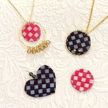- 丸カンを使用する場合は、ここでペーパーに穴をあけて通す。