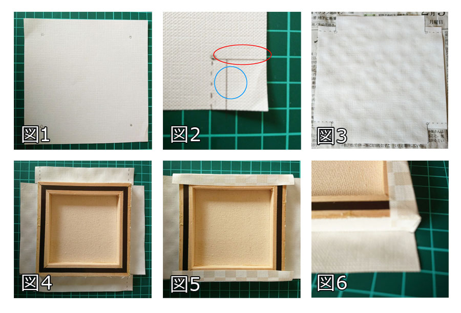 1. 10cm+(パネルの厚み+内側の枠部分の寸法(図2の赤丸))×2の長さに紙を切る(2cmなら14cm四方)。<図1>