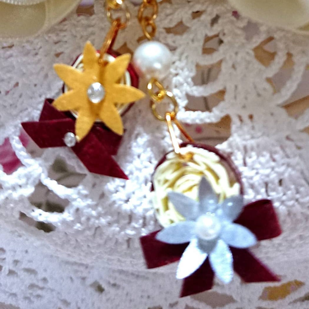 - リボンは一般的な作り方のリボンを、パーツの大きさに合わせて、大小各1個作る。