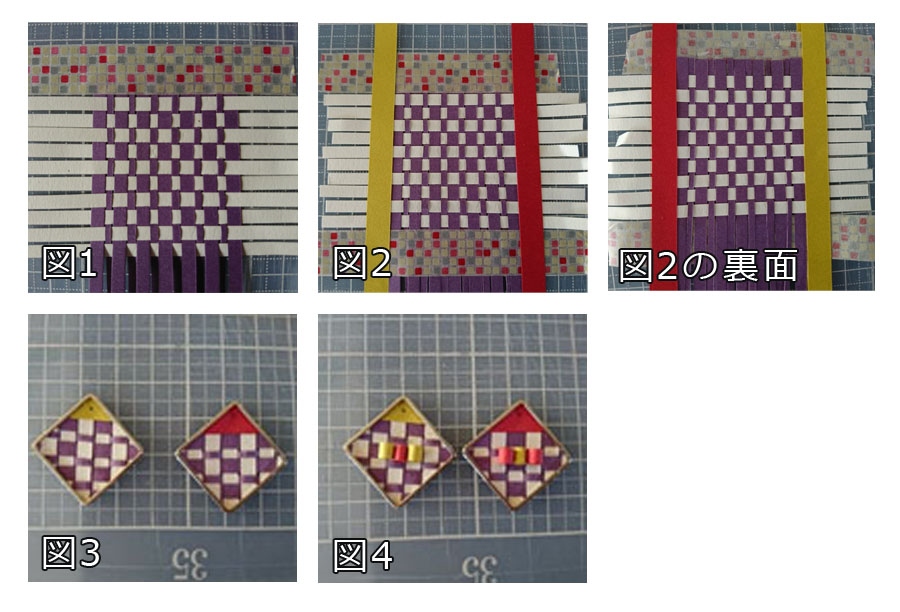 - 横方向に白のペーパーを並べて、互い違いに差し込み格子状にする。