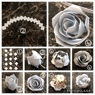 - ④下は内側にバーやピンセットで丸めて、上はお花の様に外巻きで花を咲かせる。
