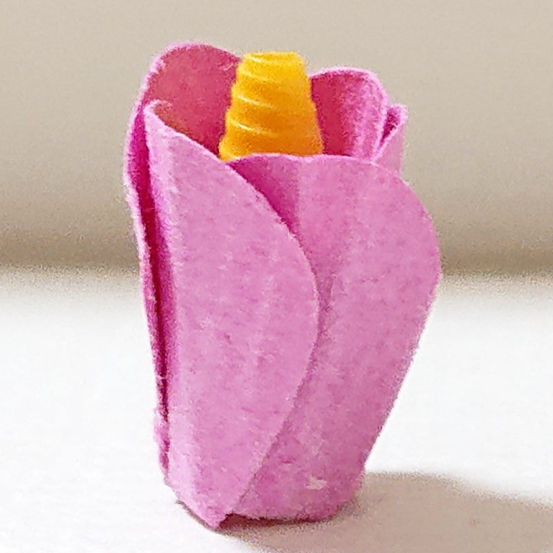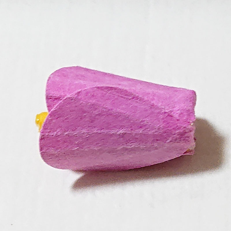 - 花びらを広げ、片方だけ、真ん中から斜めにピンセットの裏で丸くする(写真3)。