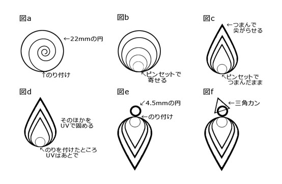 - ピンセットで中心と、のり付けした部分を寄せる(図b)。