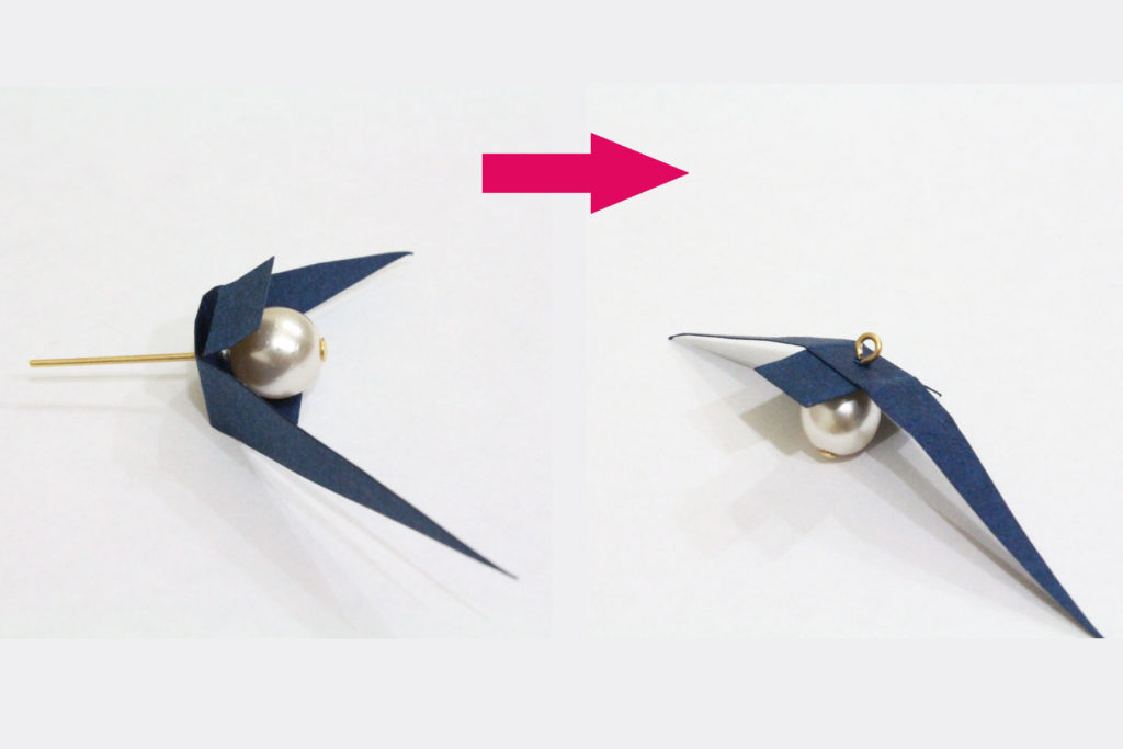- 全ての面にレジンを塗り硬化、その後ピアスに加工する。