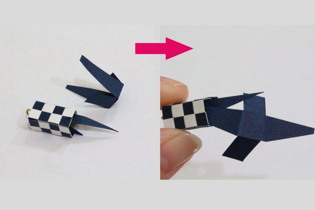 - 上面を入れ込み、下面も斜めにカットしたペーパーを軽く引っ張りながら隙間のないようにきっちり閉じる。<写真6>