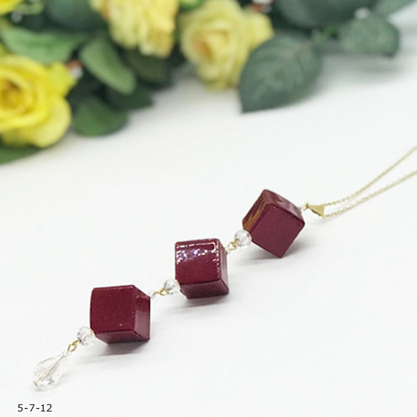 - 9ピンに6mmビーズ、キューブ、ビーズを通し9ピン留めする。(3個)