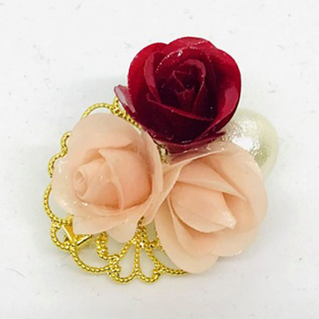 - しずく4枚の尖ったほうにボンドをつけ、パール部分にずらしながら貼り付ける。花びらは内向きにする。(写真4)