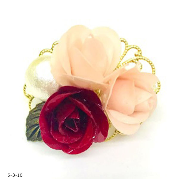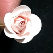 - しずく5枚の尖ったほうにボンドをつけ、パール部分にずらしながら貼り付ける。花びらは外向きにする。(写真5,6)