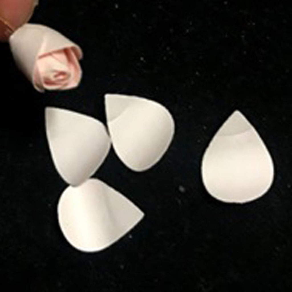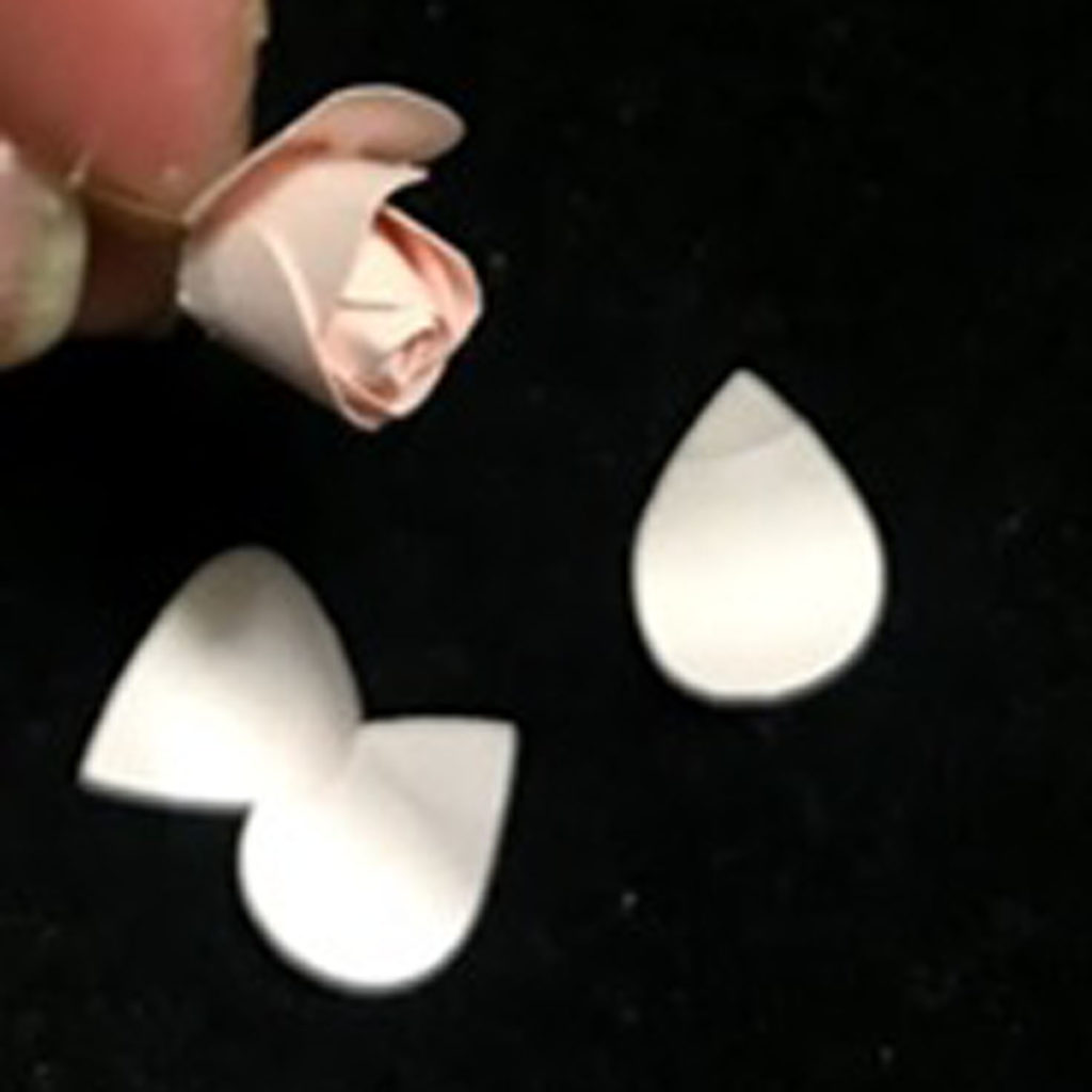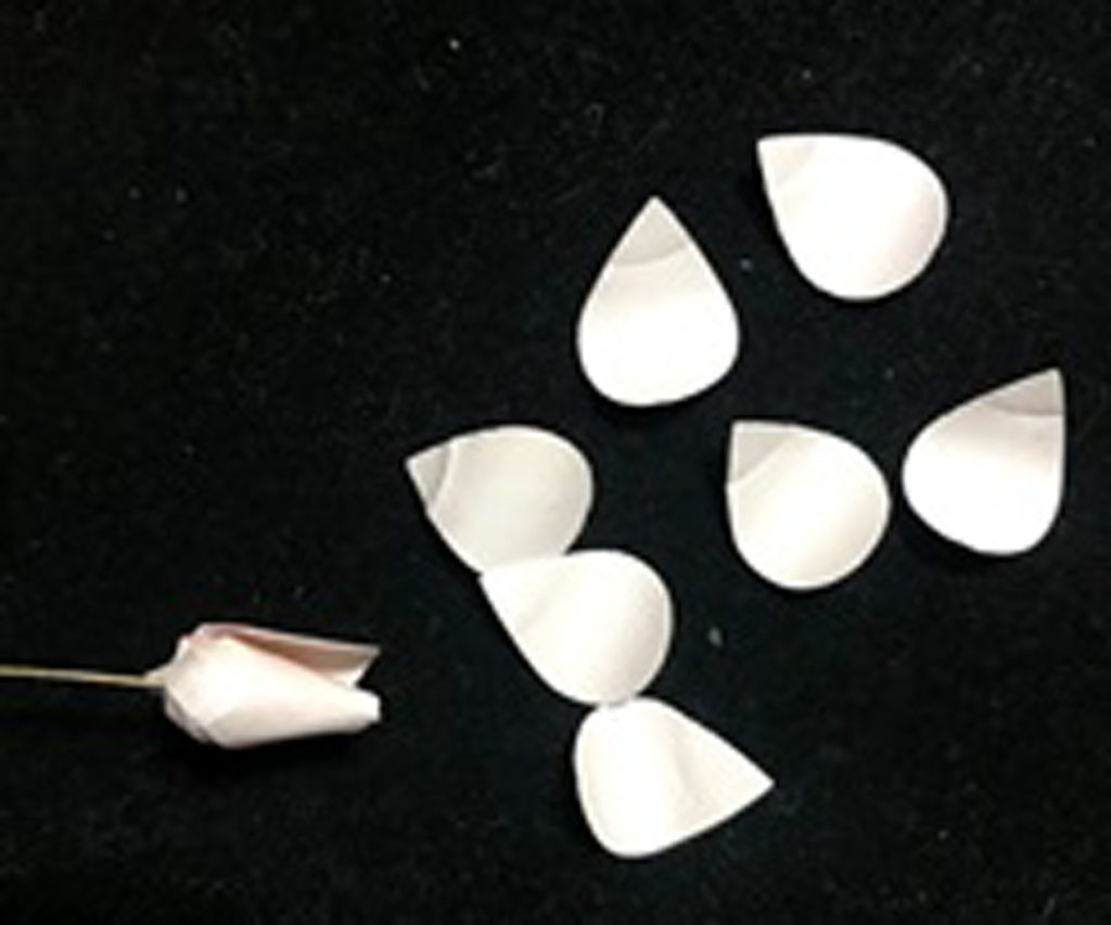 - しずく9枚をピンセット等を用いて、しごき丸みをつける。(写真3)