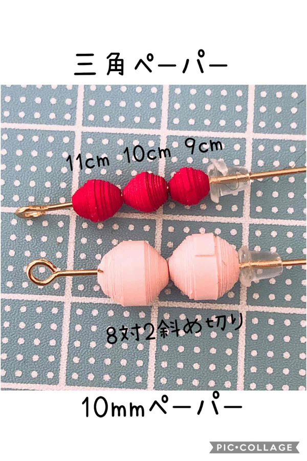※資料Aは三角ペーパー先端から〇cmの時のサイズ、10mmペーパー1本を8対2mmで斜めにカットした紙を巻いた時のサイズです。