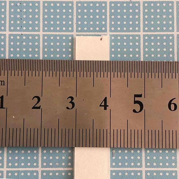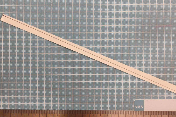 - ラインペーパーで作る場合は写真のように、ペーパーの端に8mmと2mmの印をつけて斜めに用紙をカットする。