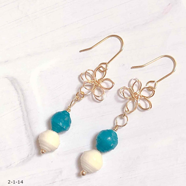 - デザインピンに丸く巻いたペーパーを入れ、メガネ留めをし、ピアスを完成させる。
