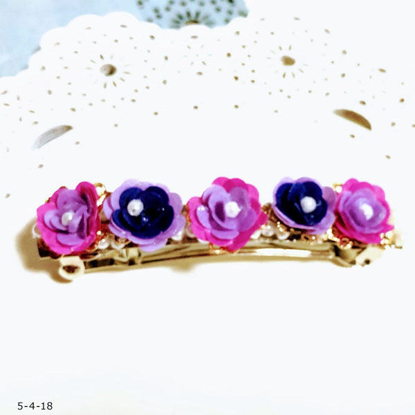 4. バレッタの上に3をバランスよく並べて、ホットボンドでつける。
