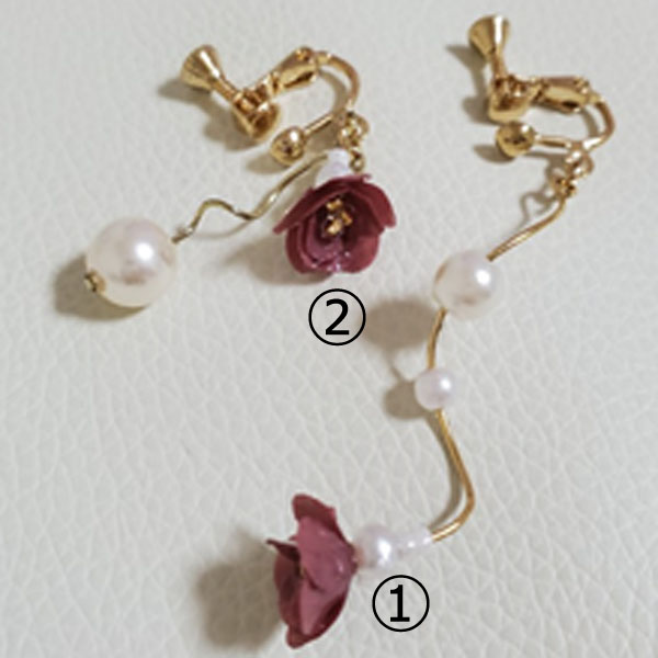 - 丸カンでイヤリングかピアスにつなげて片方1個、完成。(①)