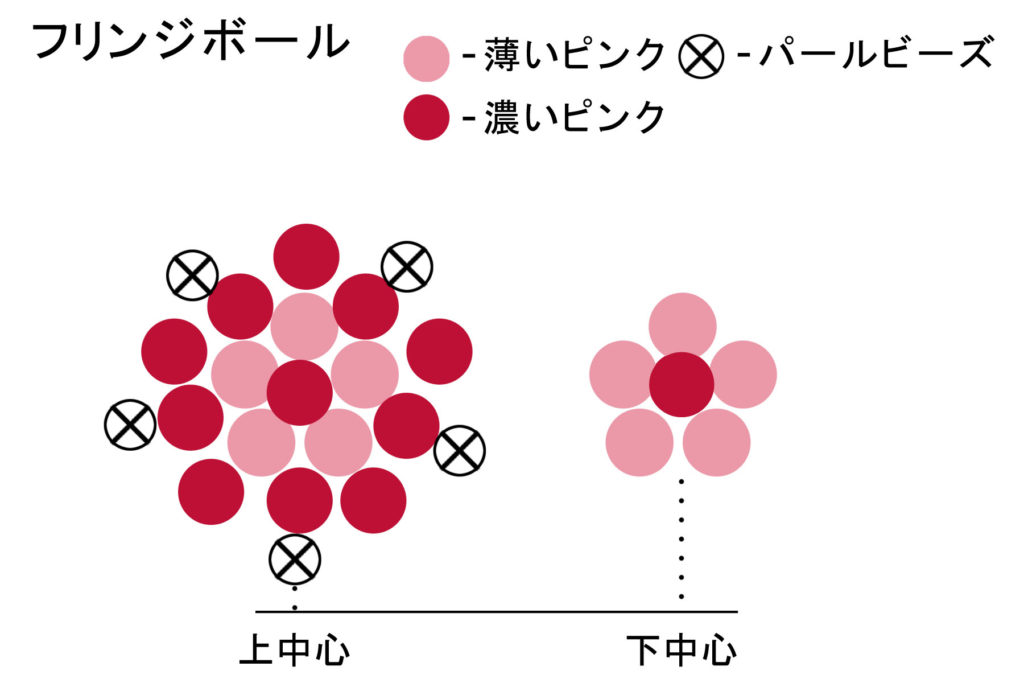 2. コットンパールにフリンジとビーズを付けていく。(図A参照)