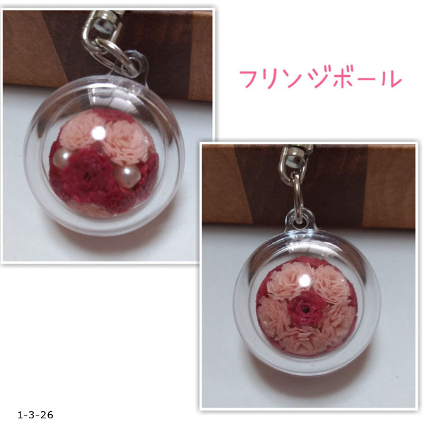 中心に付けるフリンジは、コットンパールの穴とフリンジの中心の穴を合わせておき、Tピンか9ピンを通すとレジン加工し易いです。
