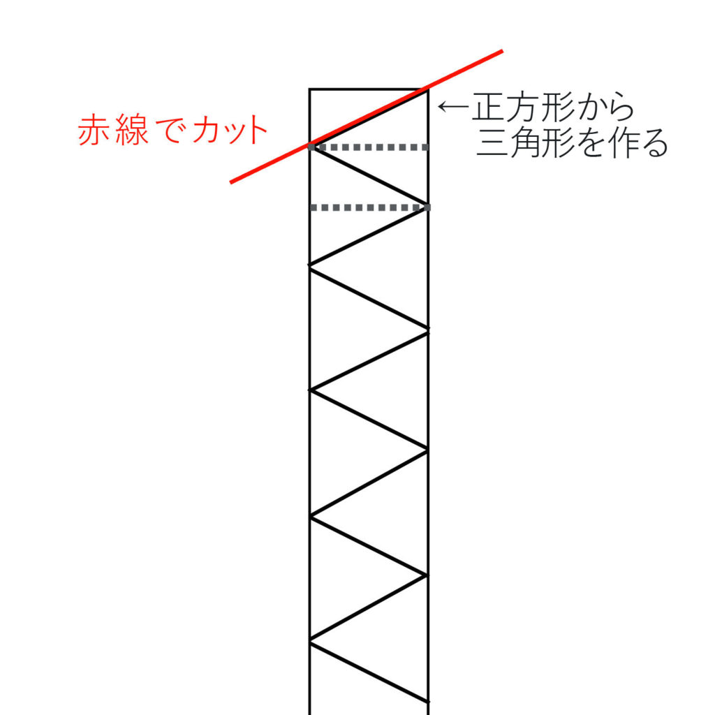 - 2重に重なった部分に4個の正三角形を入れ、もう一か所の隙間に最後の部分を入れ込む。
