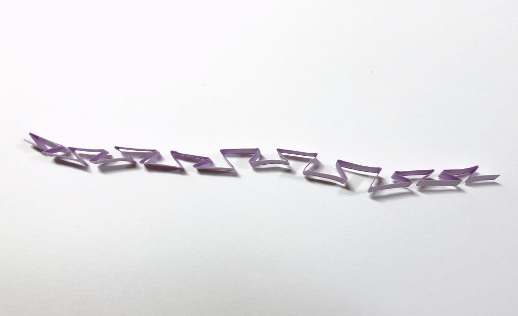1. ラインペーパーを交互に折り曲げていく。(写真1)