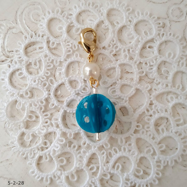 2. 1を5枚分繰り返し、丸大ビーズを通したTピンを入れ、最後の6枚目を貼る。もう一度、スクリューポンチで穴をあける。