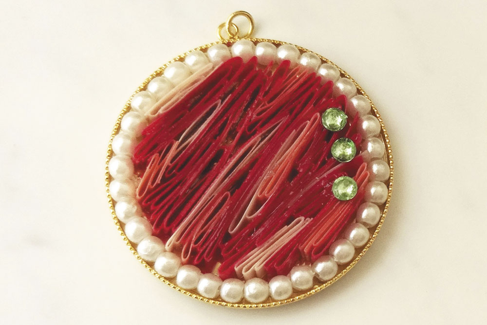 ステップ4/ステンドフォルム/基本・ステップ/本部レシピ アートショコラ 2022年12月15日 by 本部 作品使用ペーパーNO.01 NO.53 NO.54 材料 ラインペーパー4mm引き輪(板ダルマ付き)樹脂パールラインストーンミール皿丸カンチェーン美乃花レジンボトルストーン3mm 作り方 ミールさらにボンドを付け、樹脂パールをのせる。長さを整えたペーパーにボンドを付け、ミール皿に差し込み、レジン液を垂らしライトで硬化。丸カンをつなぎ、チェーンを通す。引き輪、板ダルマを付けて完成。(画像1) 画像1 販売価格 2,750円(税込)~ (by 本部) ダウンロード レシピ番号 6-3-6 本部 神奈川県海老名市