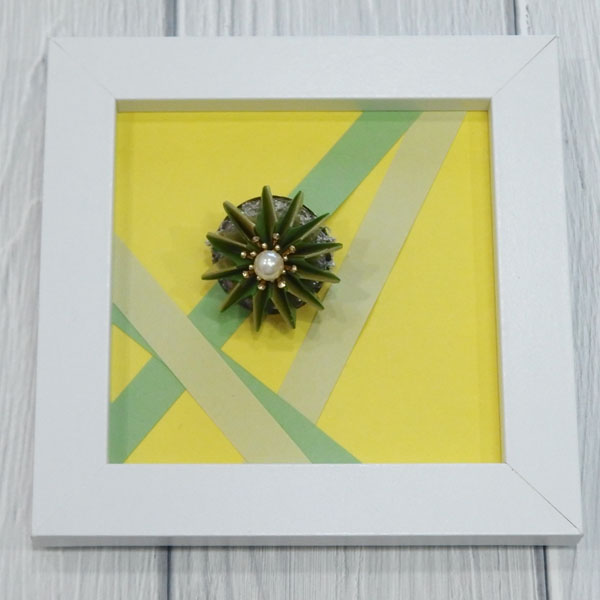 ・ペーパーを貼るときにブローチピンをくぐらせるようにすき間を作ってのり付けすると、フレームデザインとしても楽しめます。