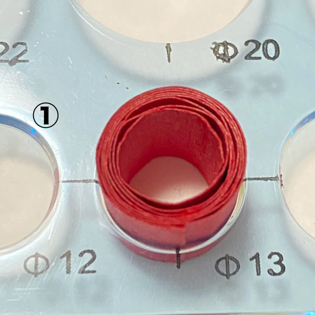 - ラインペーパー13mmで鉢を作ります。写真①の大きさに合わせ、写真②のように折りましょう。
