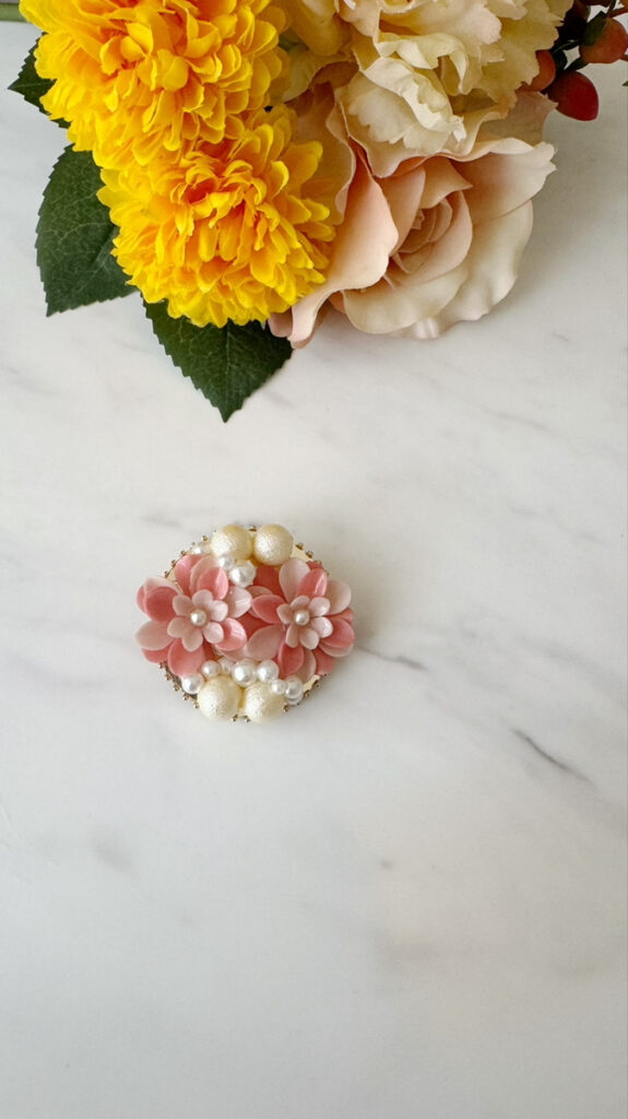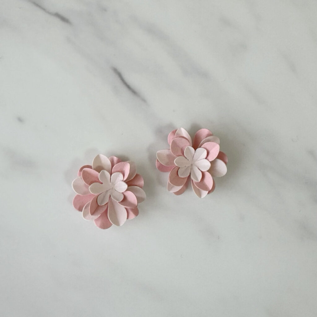 フォールドコンビ タリサのブローチ 2024年5月7日 by 本部 作品使用ペーパーNO.33 NO.47 材料 タリサ大 12枚タリサ小 4枚丸ブローチシュガーパール樹脂パール&ビーズ 作り方 タリサを2枚貼り合わせる。大6枚 小2枚。タリサは合計2個作る。 2.張り合わせたタリサを組み立てる 6枚花びら2枚 4枚花びら1枚※1枚だけ花びらの数を4枚に減らす 3.ブローチにタリサとビーズを配置してレジン硬化 ポイント タリサのパンチを2枚重ね合わせることで、強度を強くしました。 販売価格 3,000円(税込)~ タリサのブローチ ダウンロード レシピ番号 5-4t-43 本部 神奈川県海老名市