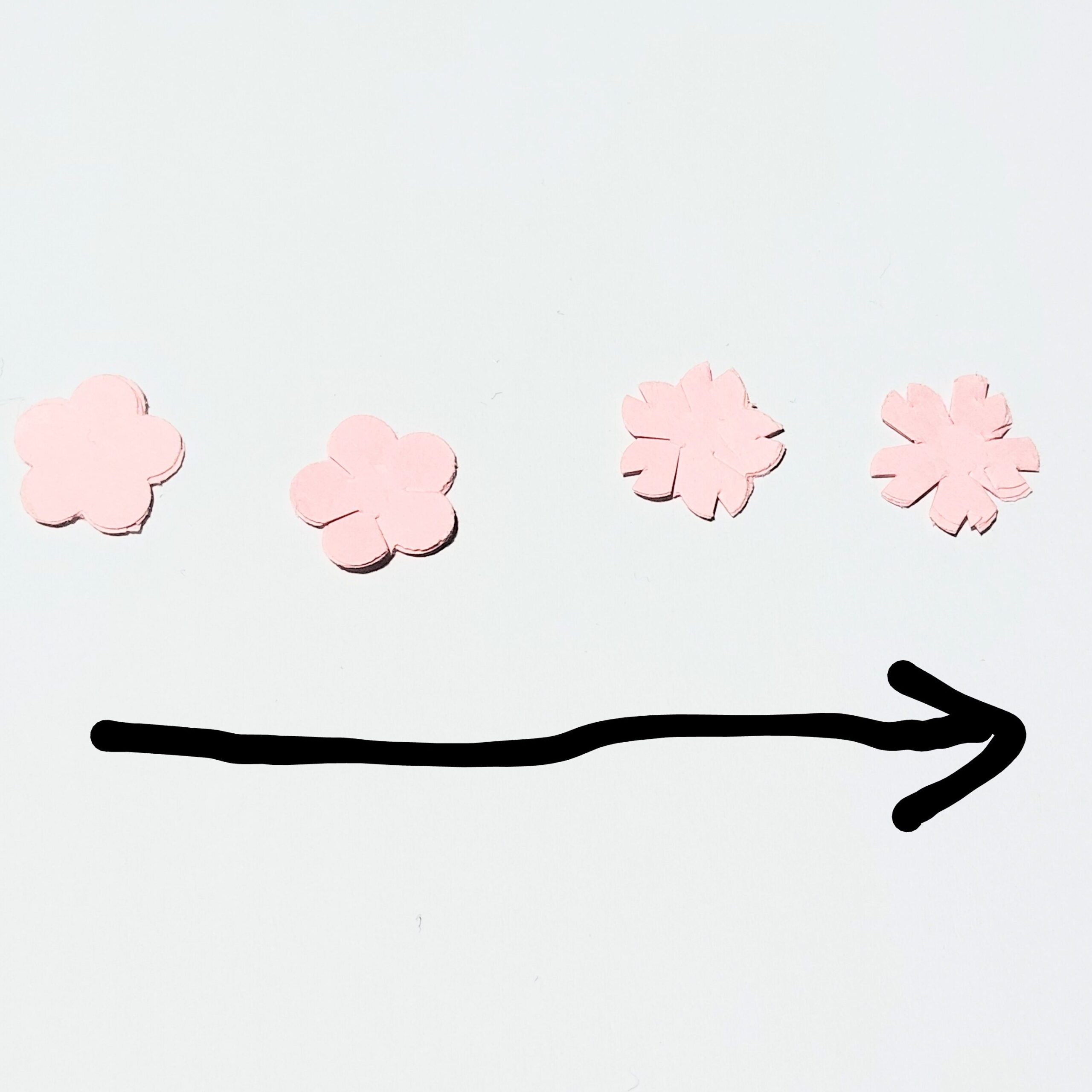 - 花びらを図1のようにご自由にはさみでカットしながら仕立てていく