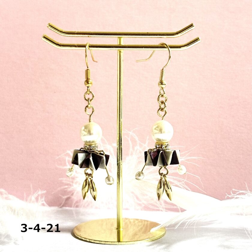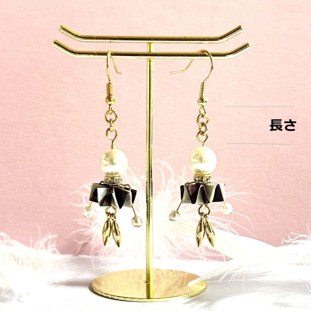 - 複数の丸カンをつなぎ、長さを調整しながらピアスまたはイヤリングに仕上げる。図4