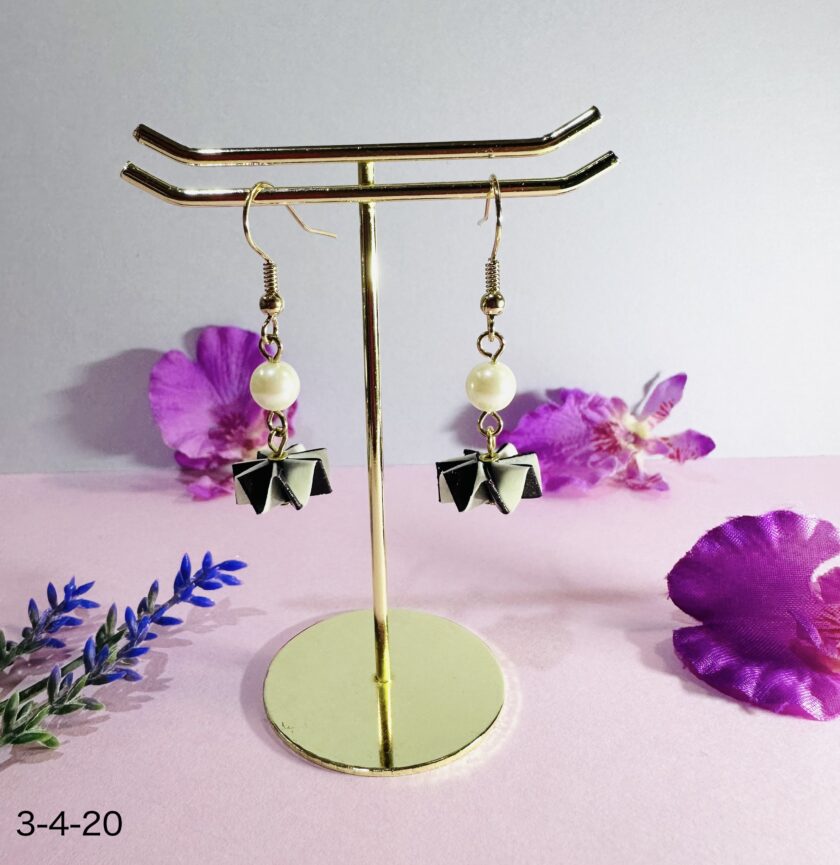 - パールとミルフィーユを繋ぎピアスまたはイヤリングに仕上げる。