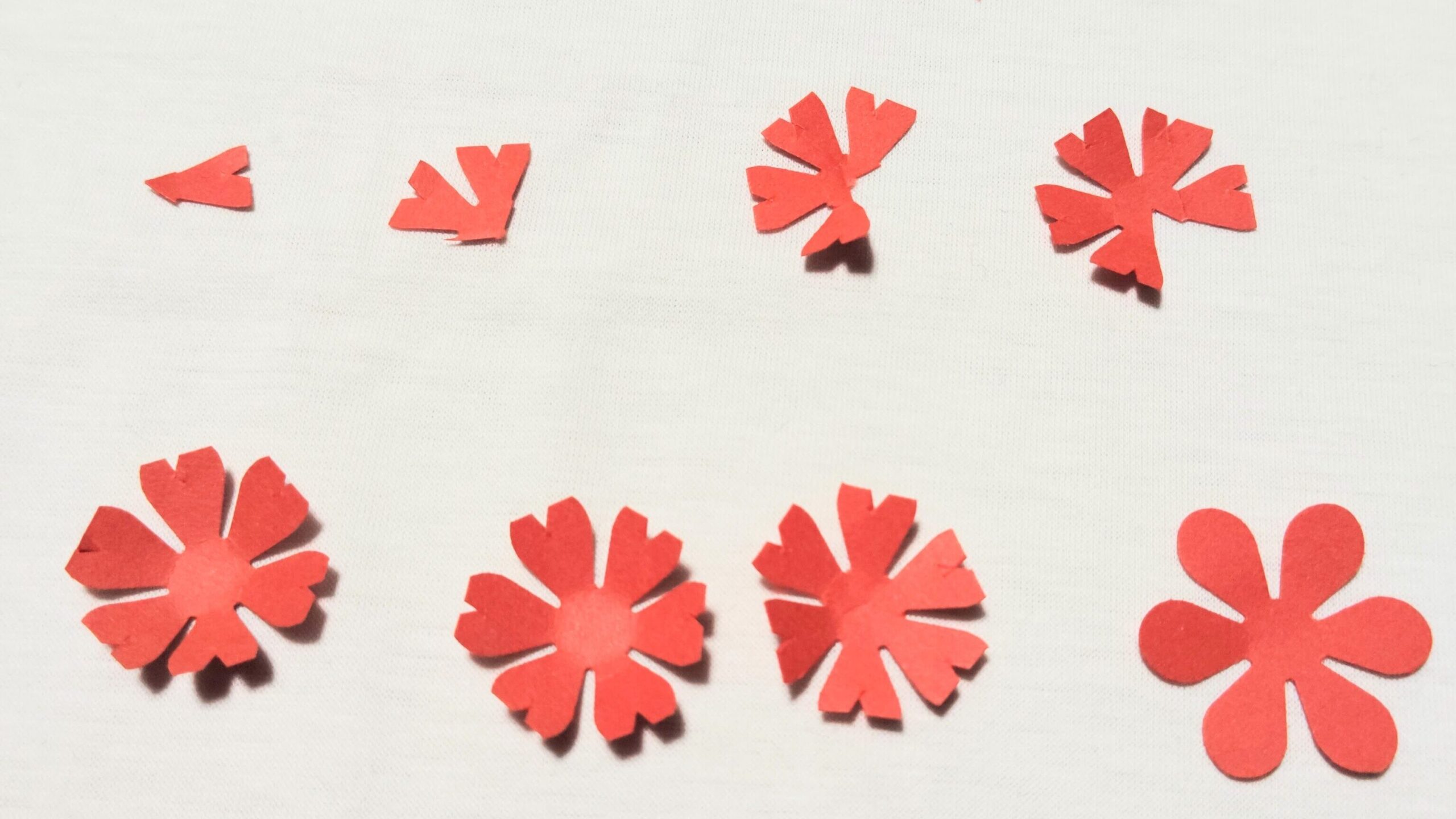 - タリサのお花の5枚の組み立て方と同じように仕上げていく、完成したお花にシャンテをつける。