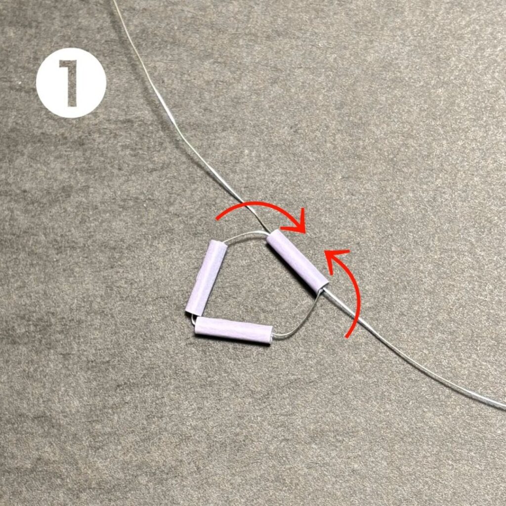 1.ワイヤーを半分に折りプチロールを3つ通す。
