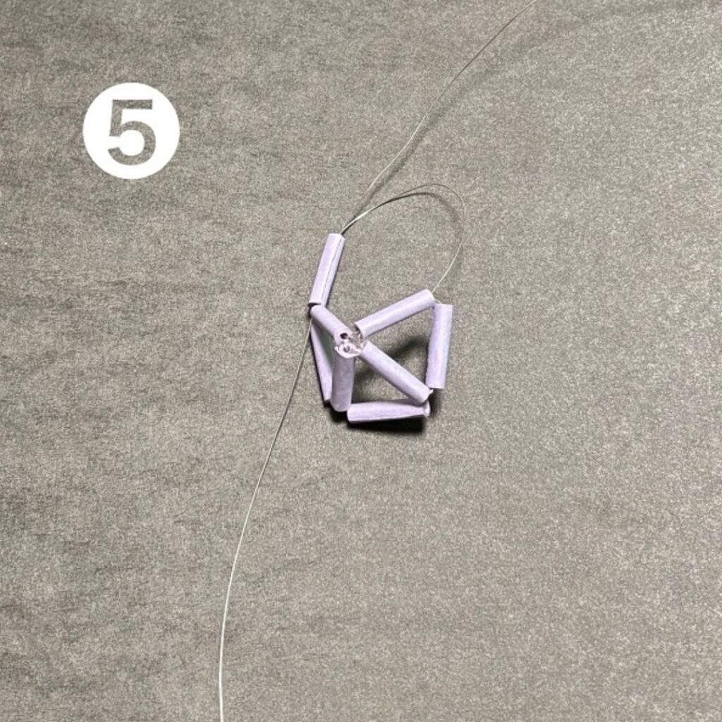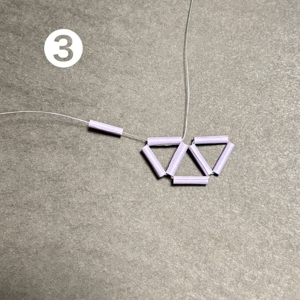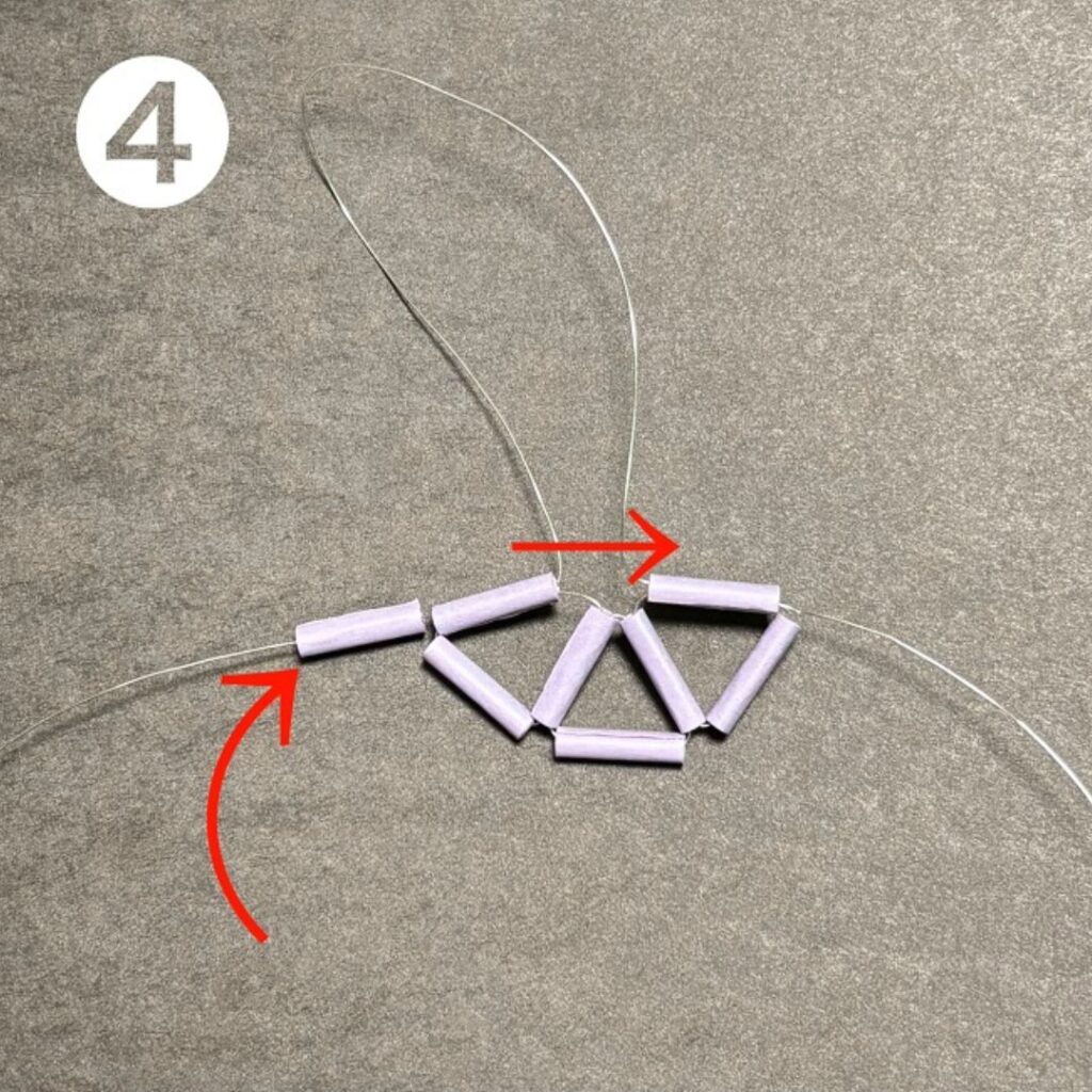 4.右のワイヤーを最初の三角のプチロールに通し、続けて手順3のプチロールにも通す。(写真④⑤)