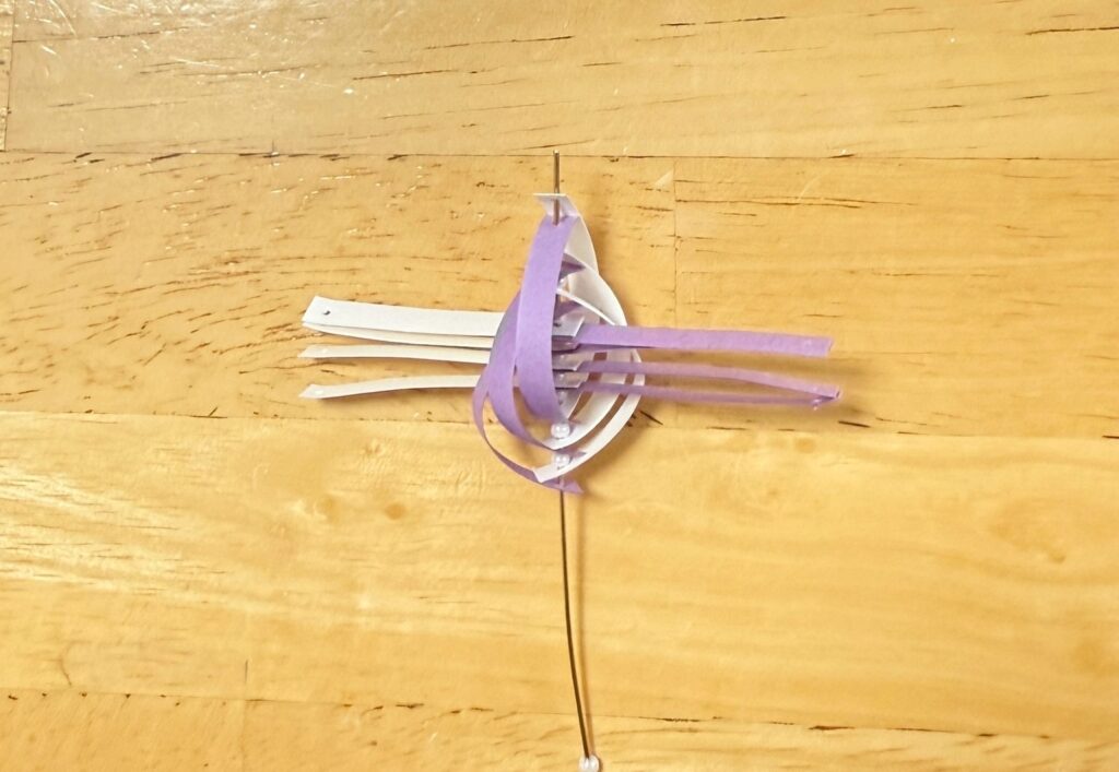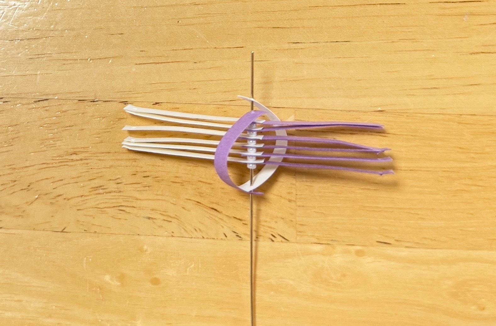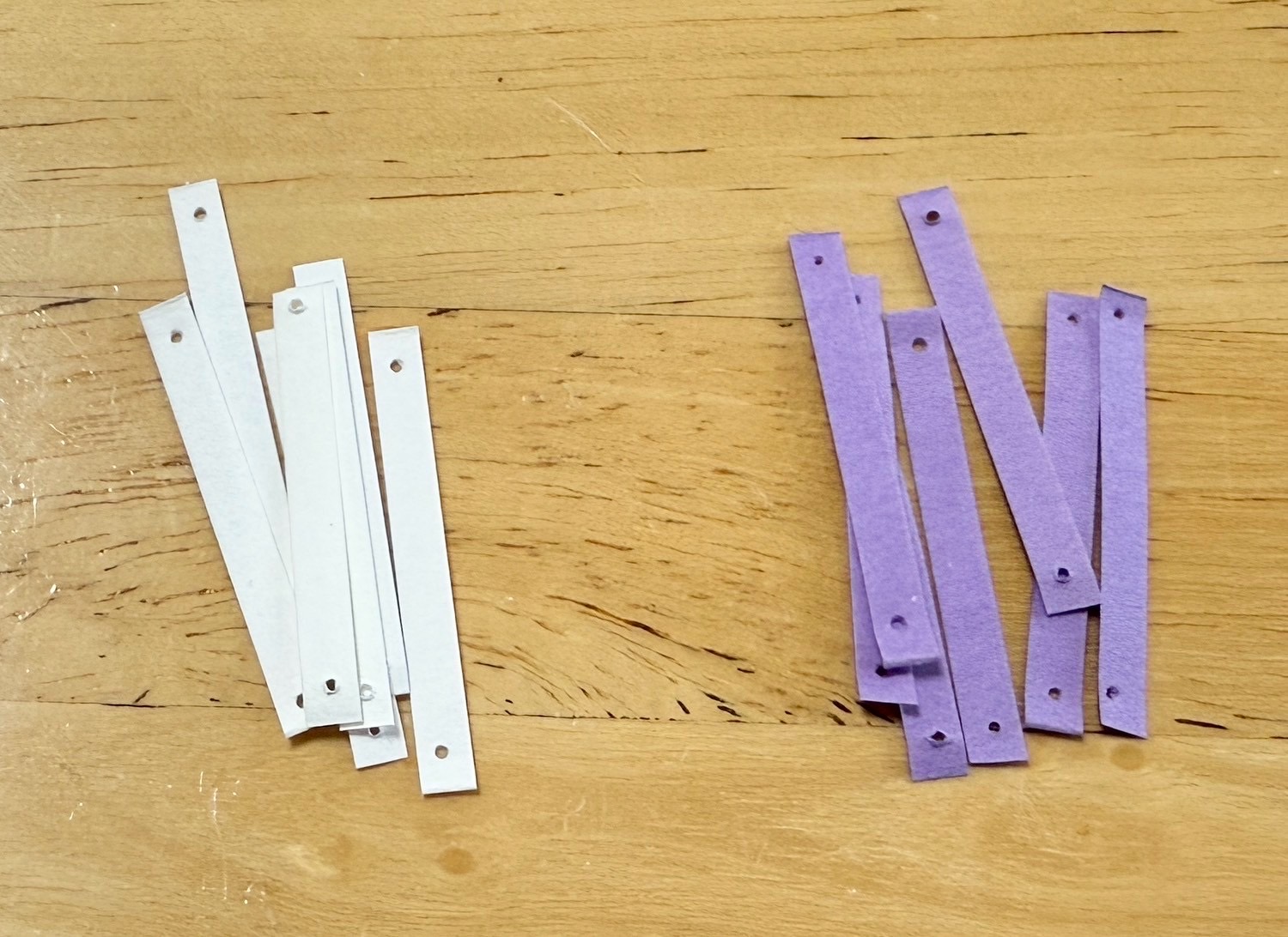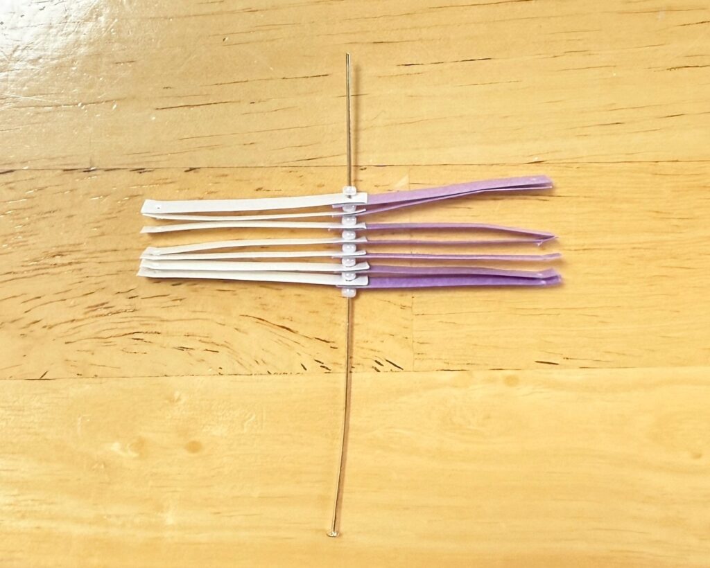 1.ラインペーパー4mmを1/8にカットし両端を目打ちなどで穴をあける