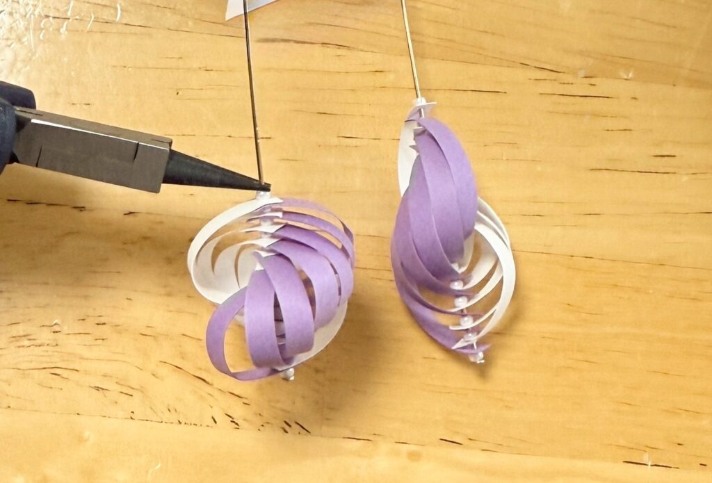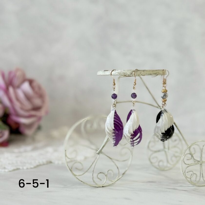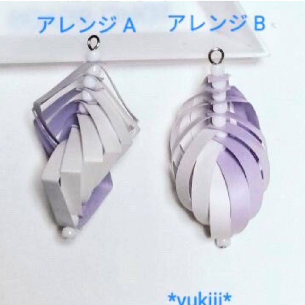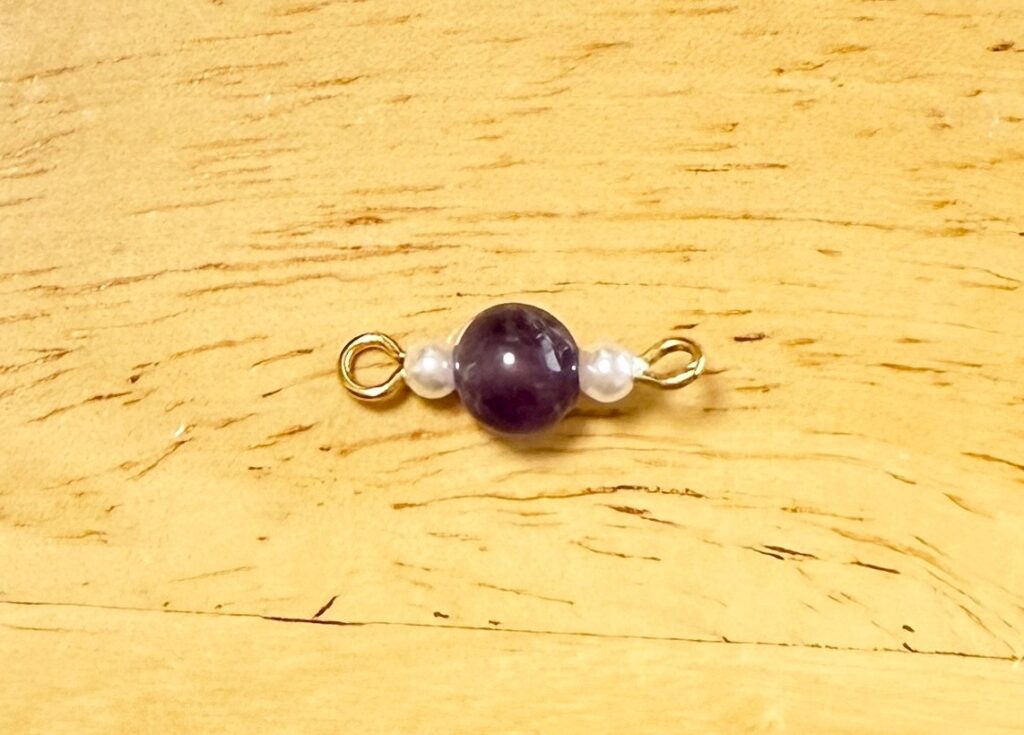 6.9ピン仕上げをし、レジン塗布後硬化。お好みのビーズ等をアレンジしてアクセサリーに仕上げる。