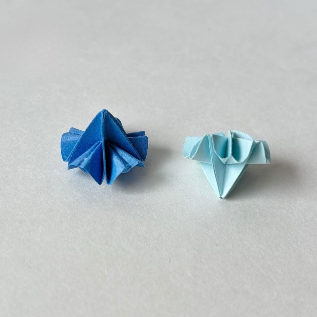 3.写真のようにピンセットをいれひだを整える。これを5個作る。