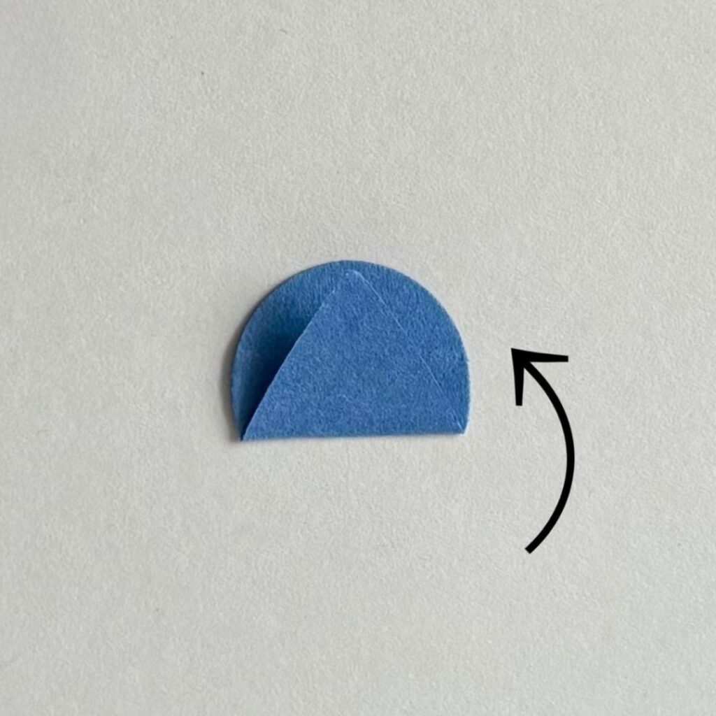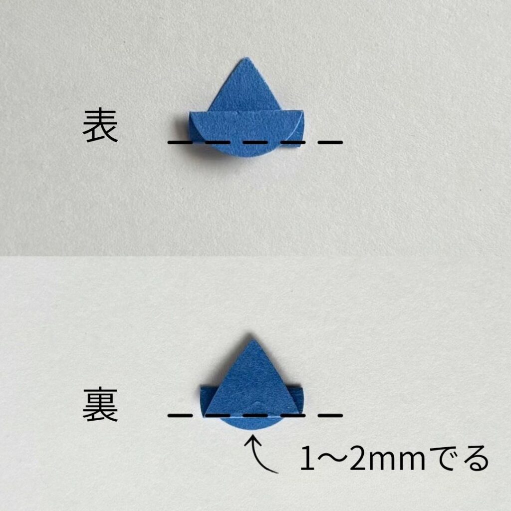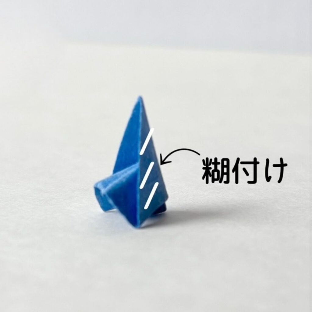 2.折ったところが中になるように縦半分に折り、★部分をボンドとめる。
