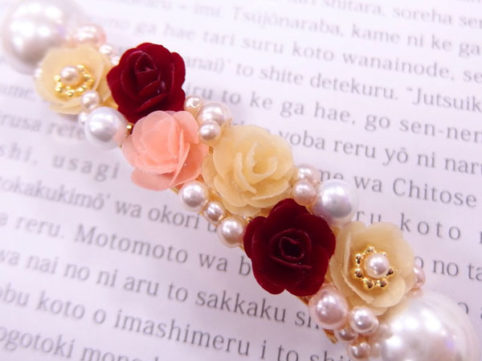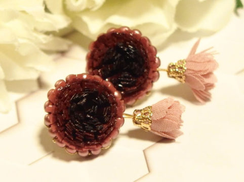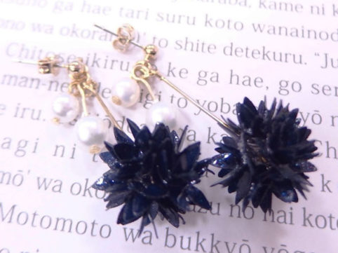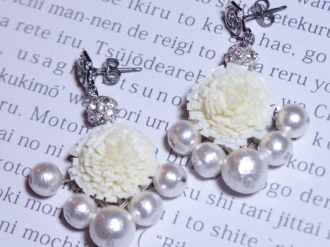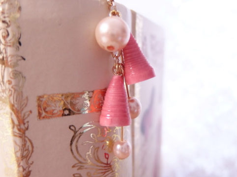 作品使用ペーパーNO. 112 NO.94 NO.48 材料 ペーパー5mm(#112 1/2本 + #94 1本 + #48 1/2本) 2本 半球パール10mm土台透かし18mm 円チェコビーズ3mmミニ花房 2個テ...