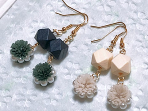 作品使用ペーパーNO.1 NO.37 NO.130 材料 シャンテコットンパールピアスとネックレス 作り方 シャンテ2枚で花を作る。(3つ) 中心に穴をあけて、Tピンにコットンパールとシャンテを通し、まとめる。 シャンテ...