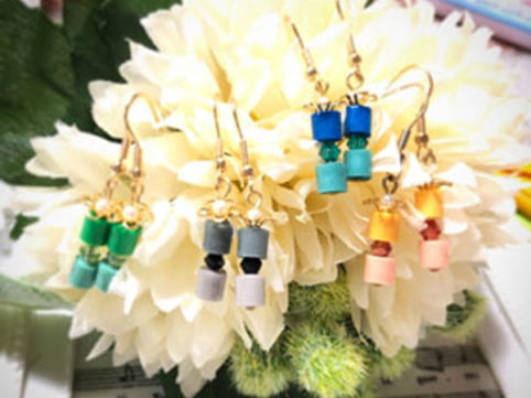 作品使用ペーパーNO.37 NO.53 材料 ラインペーパー13mm 3mmパール スワロクリスタル4mm 六角ビーズ(PFB01 378)イヤリングまたはネックレス 作り方 ファンシェイプと同様に作る。 丸カンに2つの...