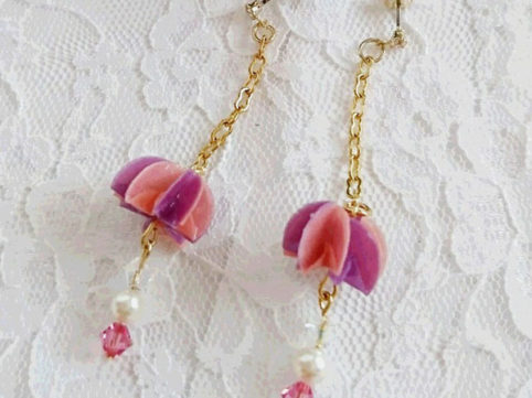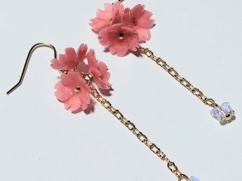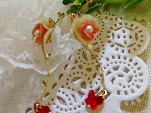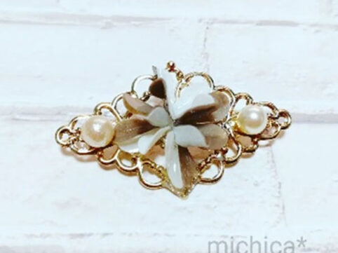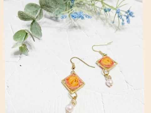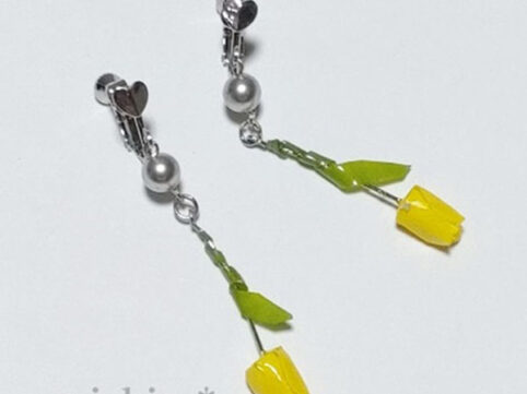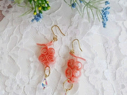 材料 ラインペーパー5mmスワロスキー 2個パール 4個Tピン 2本 作り方 1. プチロールを2個ずつ作る。2. Tピンにプチロールを通し、レジンを塗りUVライトを当てる。 作品紹介 ゴールドが入ることで、落ち着いた色...