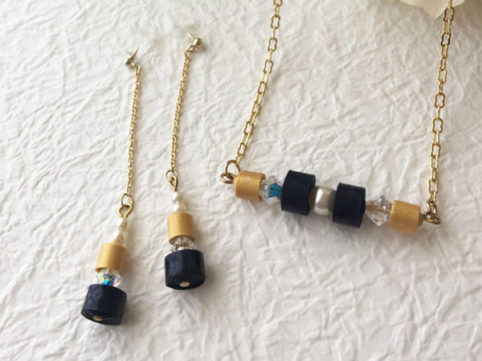 作品使用ペーパーNO.136 NO.141 または NO.136 NO.140 材料 ラインペーパー10mm 1/4 4枚 シャンテ 16枚Tピンコットンパール、グラスビーズなど 丸カン 2個 作り方 ★ネックレス1.2...
