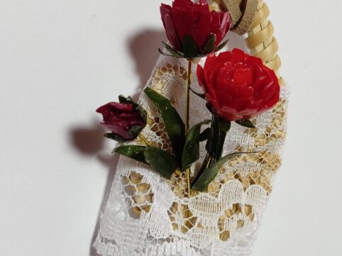 作品使用ペーパーNO.104 NO.68 NO.92 材料 タリサ大(お花1輪分5枚)✕2タリサ1枚(つぼみ)シャンテ3枚ラインペーパー13mm少し必要(お好きなように葉を作ってください)Tピン(3本)茎に見立てるネック...
